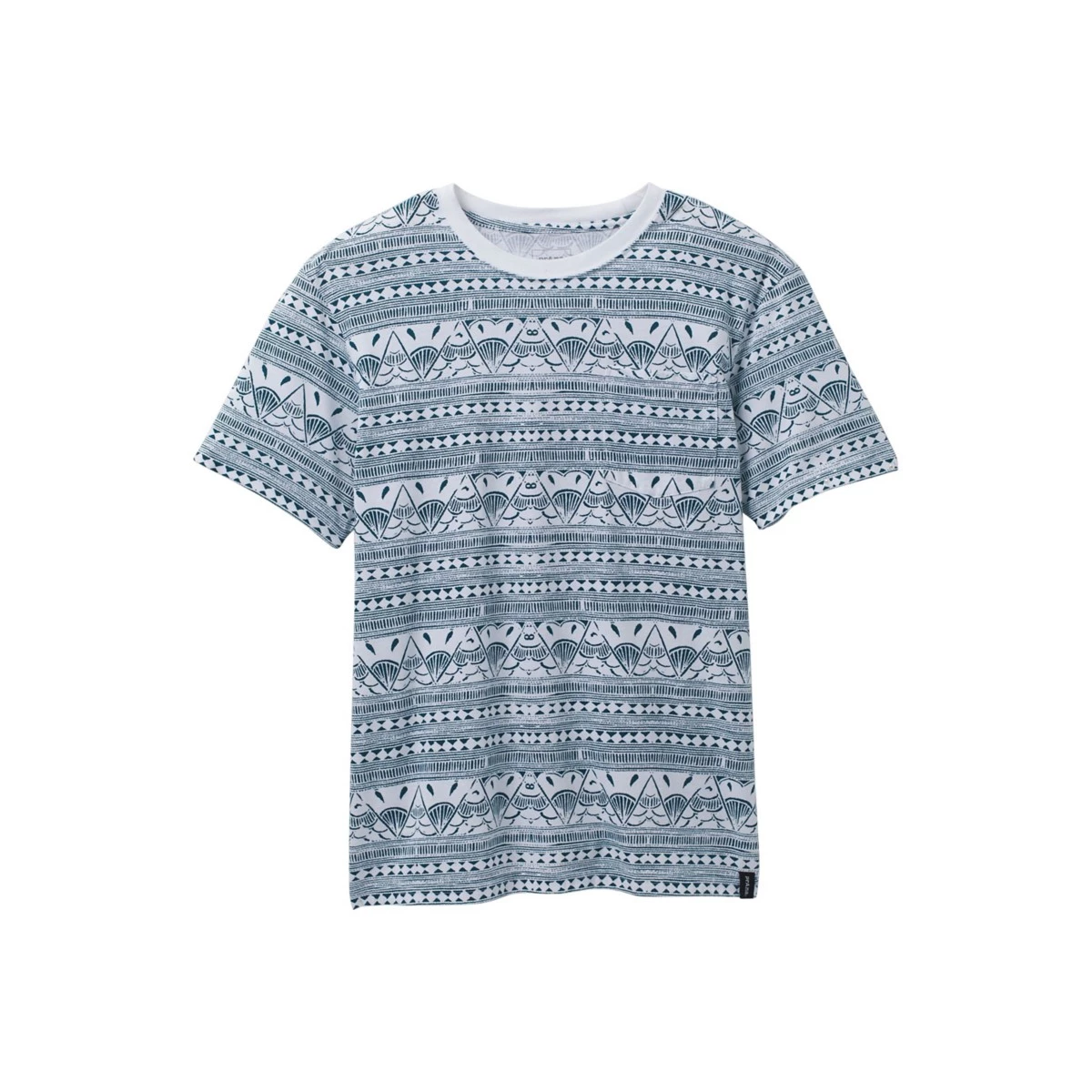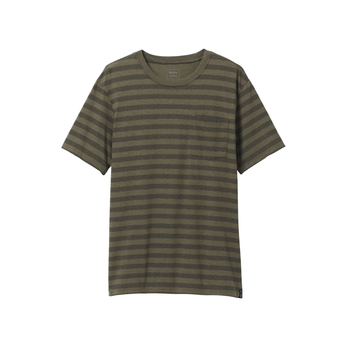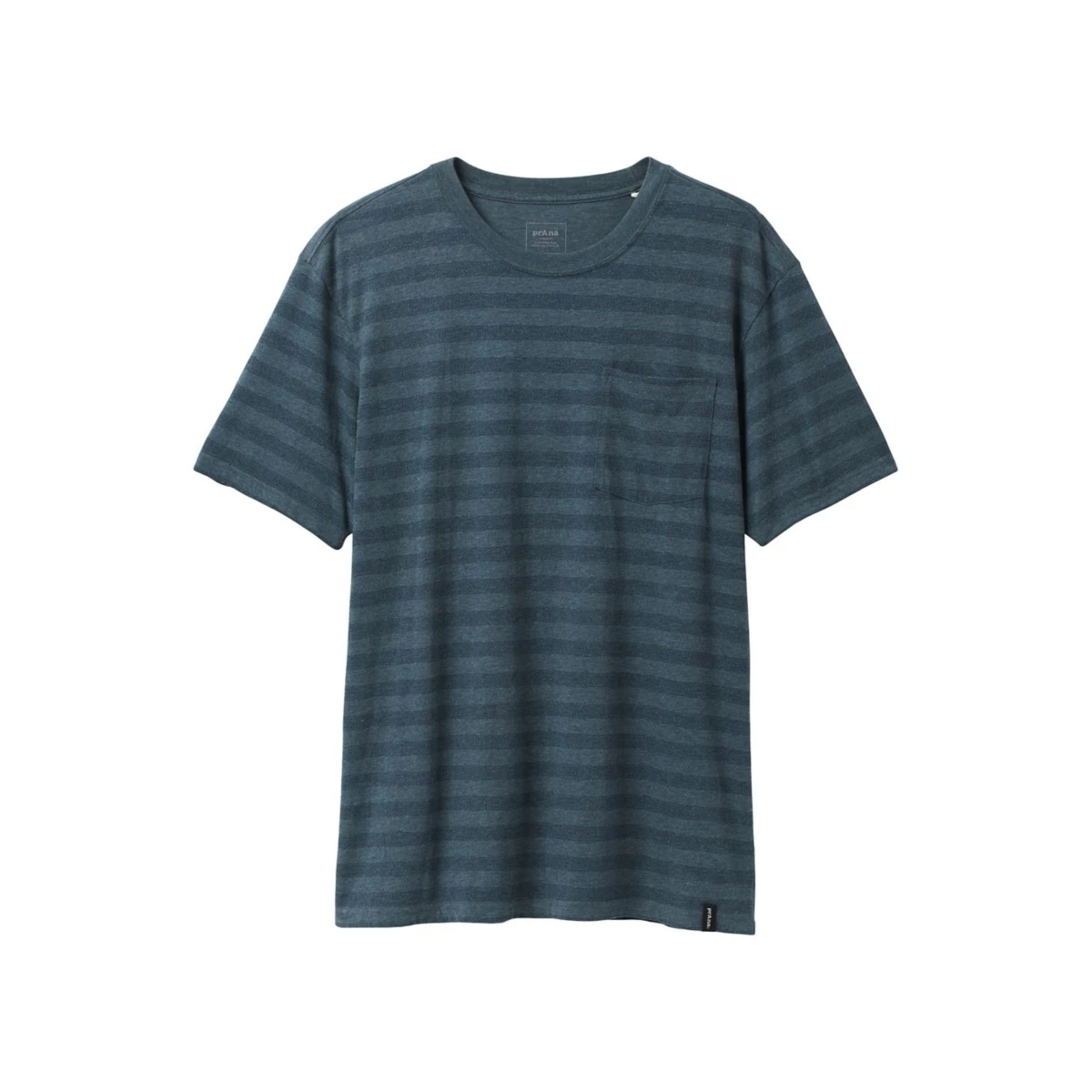 Organic Cotton/ Recycled Polyester blend lightweight jersey • bluesign (r) approved fabric • Front chest pocket • All-over printed stripe • Woven label placed on bottom hem opening • Roots Studio + prAna co-lab • Standard Fit
