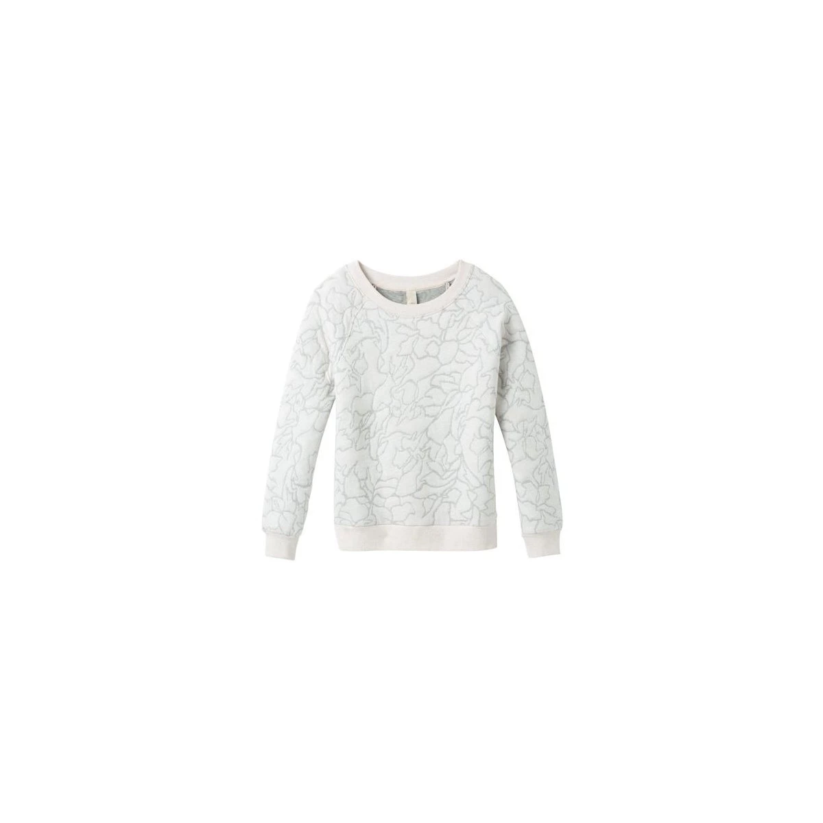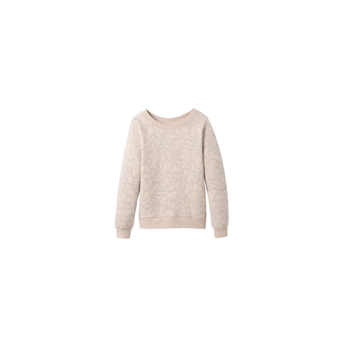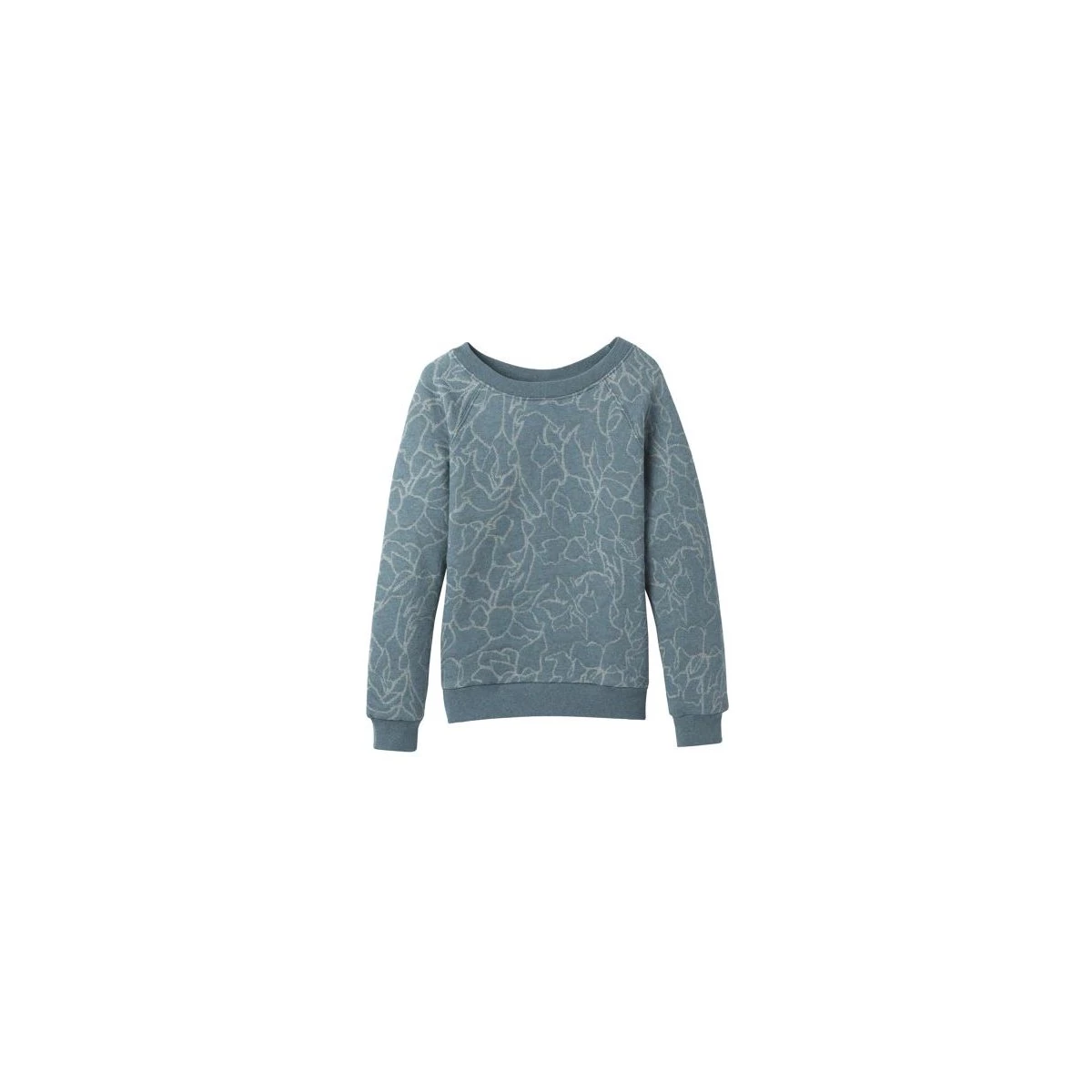 The prAna Carin Pullover for women is made with a double-knit blend of organic cotton and recycled poly fabric. Design details include an abstract floral pattern print, a crew neckline, raglan sleeves, and a relaxed fit.