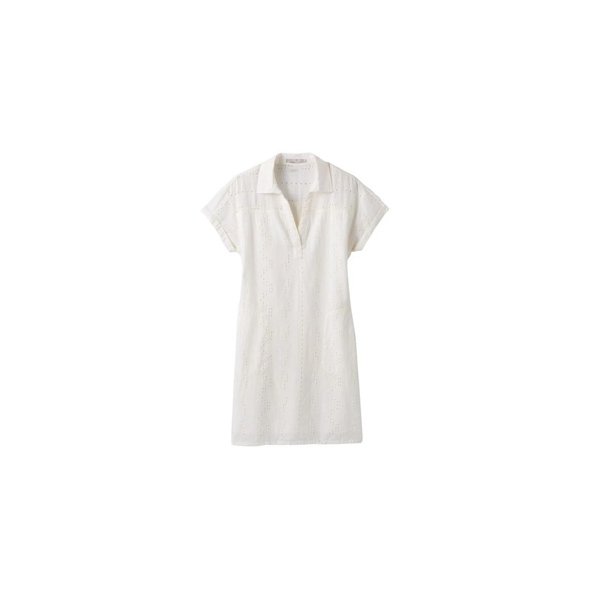 The prAna Ladyland Dress is made with 100% organic cotton woven dobby fabric. Design features of this short-sleeved, collared t-shirt dress include a 3/4 front placket, rolled and tacked short sleeves, a fully lined inner dress, side seam pockets, an above-the-knee cut and a relaxed fit.