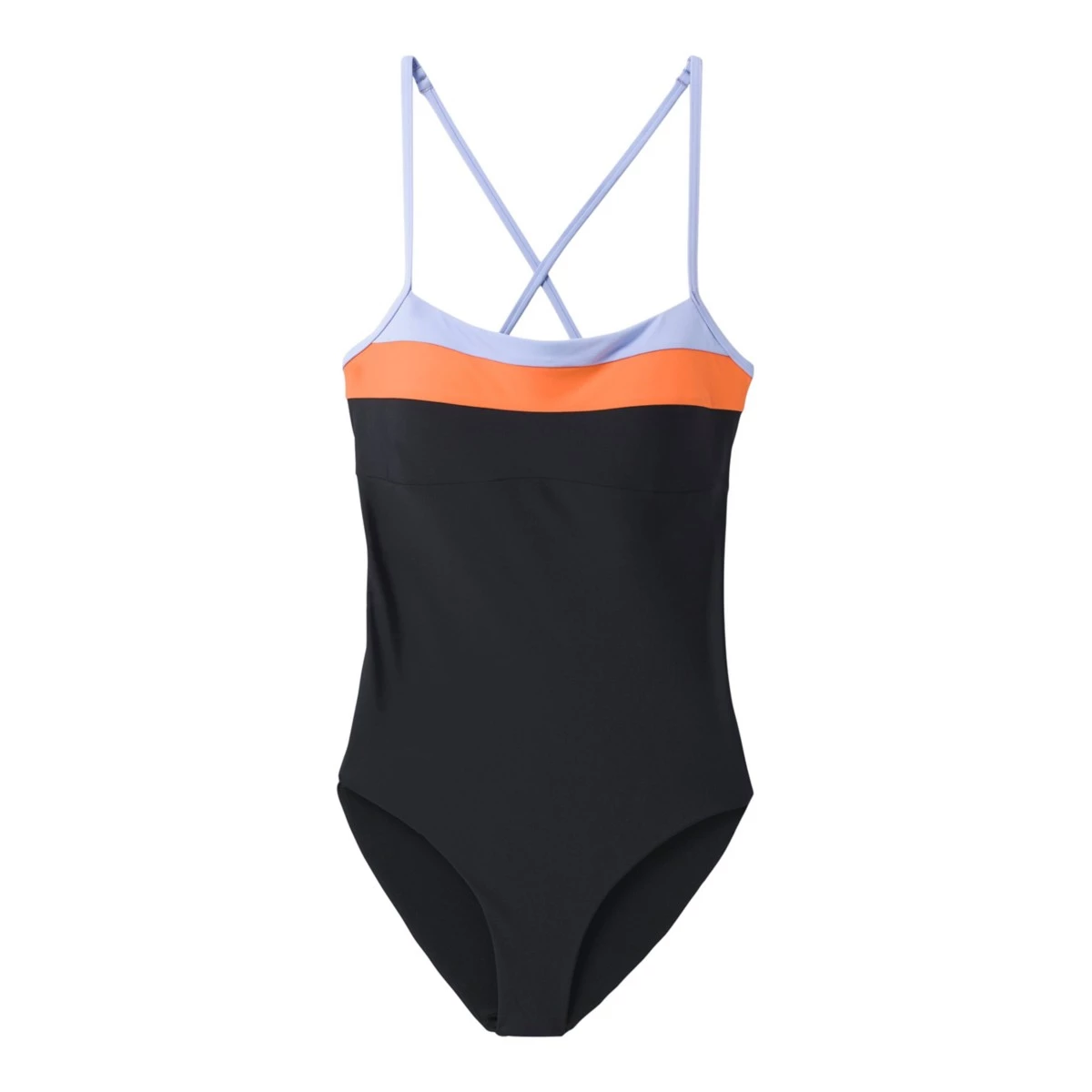 The prAna Lurisia One Piece for women is a swim style made with ECONYL® regenerated nylon and built by a Fair Trade Certified™ Factory. Design features of this sporty style include a square neckline, adjustable shoulder straps, an intricate back detail, removable soft cups, full bust coverage, moderate support, a standard leg, and a cheeky seat.